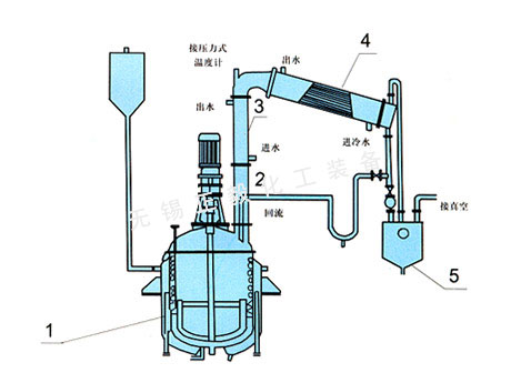 本全套裝置是用于生產(chǎn)不飽和聚酯樹(shù)脂、酚醛樹(shù)脂、環(huán)氧樹(shù)脂、ABS樹(shù)脂、油漆的重要設(shè)備。全套設(shè)備由反應(yīng)鍋、豎式分餾柱、臥式冷凝器、貯水器、溢油槽、管線(對(duì)稀釜)等組成,全套設(shè)備與物料接觸部分采用不銹鋼制作。